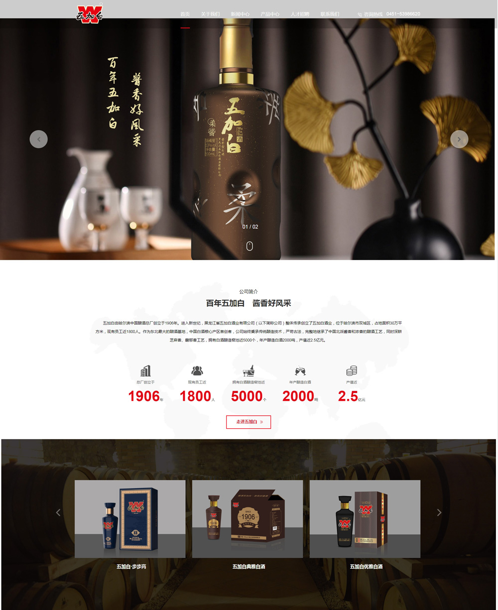 五加白由哈爾濱中國釀酒總廠創(chuàng)立于1906年。進入新世紀,黑龍江省五加白酒業(yè)有限公司(以下簡稱公司)整體傳承創(chuàng)立了五加白酒業(yè),位于哈爾濱市雙城區(qū),占地面積30萬平方米,現(xiàn)有員工近1800人。作為東北最大的釀酒基地,中國白酒糧心產(chǎn)區(qū)首創(chuàng)者,公司始終秉承傳統(tǒng)釀造技術(shù),嚴苛古法,完整地繼承了中國北派醬香和濃香的釀酒工藝,同時深耕芝麻香、馥郁香工藝,擁有白酒釀造窯池近5000個,年產(chǎn)釀造白酒2000噸,產(chǎn)值近2.5億元。