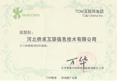 TOM集團(tuán)授權(quán)證書(shū)