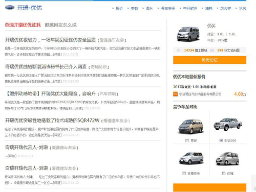 樣例二、頁面主題為“奇瑞開瑞優(yōu)優(yōu)油耗”,但頁面搜索結(jié)果中各種主題的內(nèi)容都有,完全不相關(guān)。