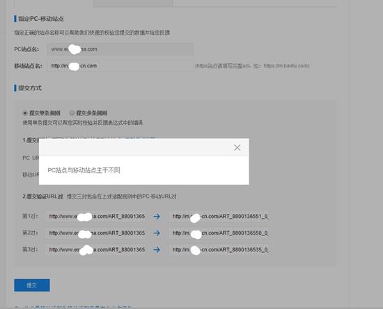 1、問(wèn):新版的移動(dòng)適配工具,不支持pc和移動(dòng)版domain不一樣的提交嗎?提示pc站點(diǎn)與移動(dòng)站點(diǎn)主干不同。什么是主干?