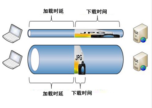 快速的互聯(lián)網(wǎng)連接只是其中的一部分,加載頁面所需的時(shí)間不僅取決于連接的速度,還取決于瀏覽器對(duì)該頁面的遠(yuǎn)近。就好比是將我們的互聯(lián)網(wǎng)連接視為管道。我們的連接帶寬即“速度”越高,管道越寬。管道越寬,可以并行下載的數(shù)據(jù)越多。雖然這有助于整體數(shù)據(jù)吞吐量,但我們的瀏覽器所建立的每個(gè)特定連接仍然需要最小的距離。用圖來說明一下帶寬和延遲之間的差異。