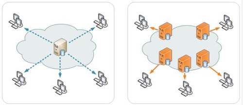 那么如果我們的實(shí)際數(shù)字高于此數(shù)字要怎么辦呢?也不是很難解決,我們可以使用CDN改善延遲問題的,解決方案非常簡單,只要減少內(nèi)容與訪問者之間的距離就可以了。就是將我們的靜態(tài)內(nèi)容移動(dòng)到內(nèi)容交付網(wǎng)絡(luò)CDN中。CDN會(huì)自動(dòng)將我們的內(nèi)容復(fù)制到全球各地,并且地理位置更接近我們的用戶。因此,現(xiàn)在如果我們?cè)诿绹l(fā)布內(nèi)容,它將自動(dòng)復(fù)制到Syndey中的服務(wù)器,我們的英國用戶將從中下載該服務(wù)器。如圖所示,CDN在減少用戶請(qǐng)求的距離,從而減少TTFB的延遲部分方面有很大的不同: